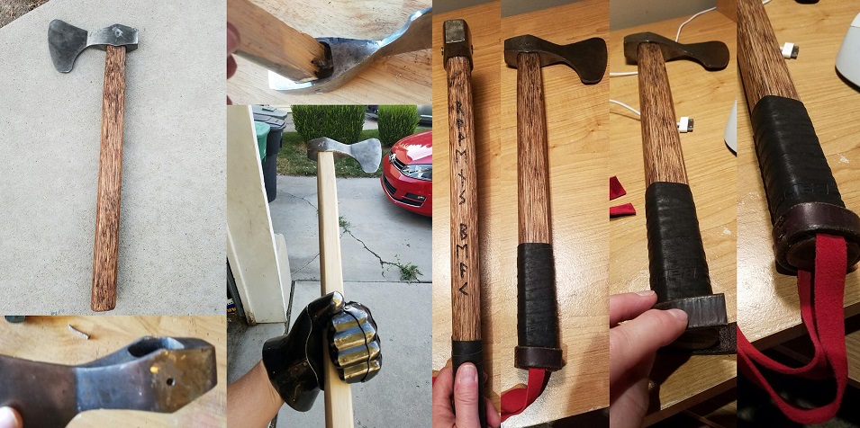 Years ago at Melee Madness, an awesome SCA event that gets held at the closest thing we have to a castle here in Utah, I was awarded a prize, a beautiful axe, and proclaimed the “Meanest mother” for that event. Not in a Motherly sense…in a bad motherfracker sense just so you know. That axe was awesome but using it in steel practice had cracked the haft that came with it (hard woods don’t last long in this sport) and thus sat on my work table needing to be fixed for several months.